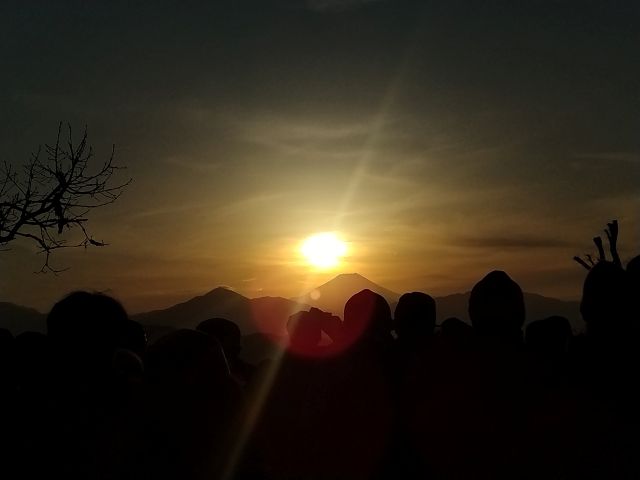 「冬至(2025年12月22日)」 前後2日に高尾山で「ダイアモンド富士」を見ることが出来ます 空を見ながら、山頂には多くの人が集まります 今日は、約300人ぐらい集まっていたのかな? 今回の写真は、スマートフォンで撮りました |