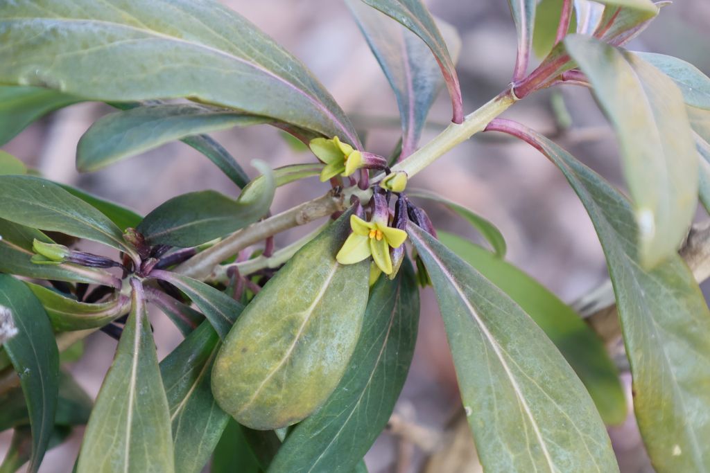 1月8日に来たときも咲いていました! ムラサキオニシバリ(別名:ナツボウズ) |