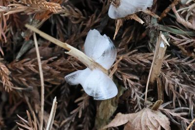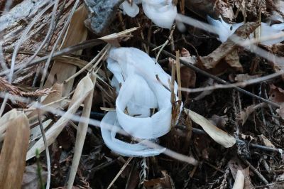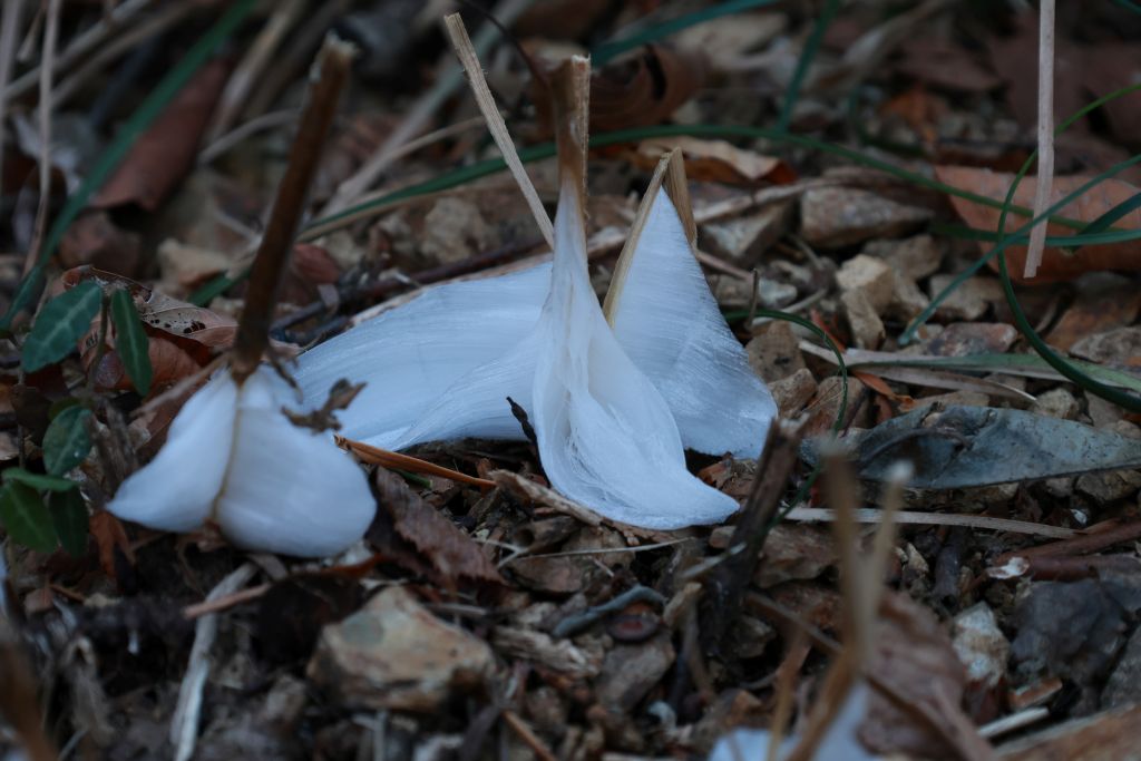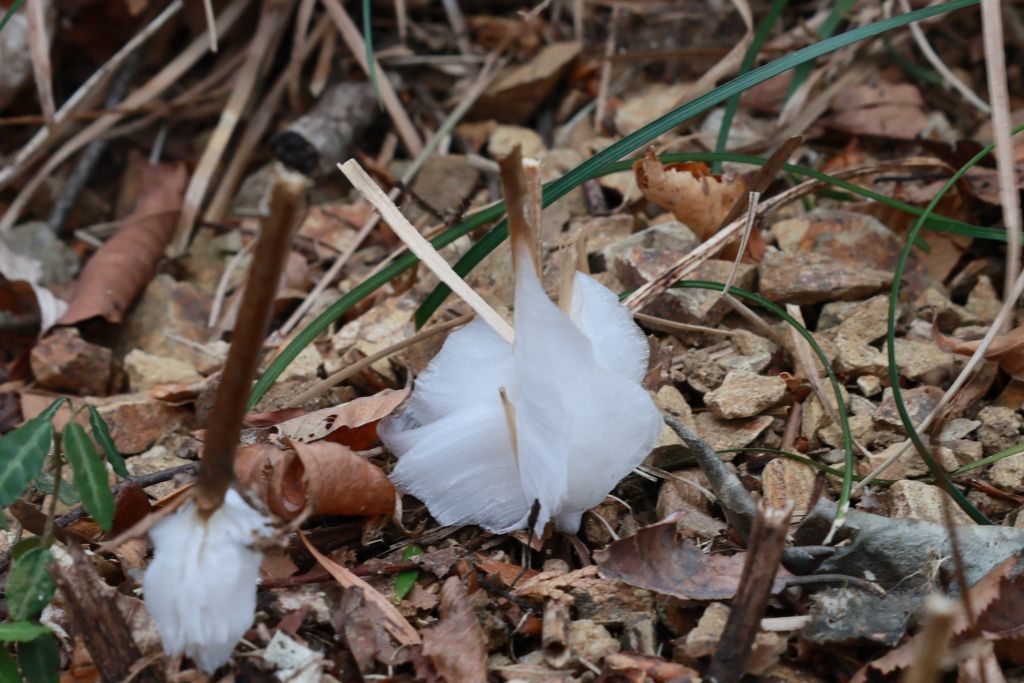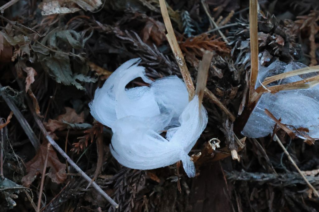 | シモバシラ(霜柱:シソ科)が作る「氷の華」 | |||
